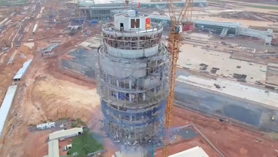 Thật vậy, theo như những hình ảnh mới nhất, Đài kiểm soát không lưu sân bay Long Thành đã tham gia Bay hiệu chuẩn với xung quanh là giàn giáo, thiết bị nâng hạ, sắt thép, vôi và vửa …